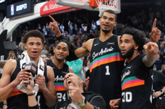 目前,马刺队有8名球员,场均得分10+以上,他们是全联盟得分最为平衡的球队。新星每个人都能站出来得分,文班、卡斯尔、福克斯、瓦塞尔、哈珀、约翰逊、尚帕尼,还有老将巴恩斯3D实力了得,攻防兼备。马刺队目前进攻效率和防守效率,均在联盟前三。上赛季雷霆夺冠,他们攻防就是都在联盟前三。这赛季,马刺和雷霆交手战绩,马刺4胜1负更加占优。